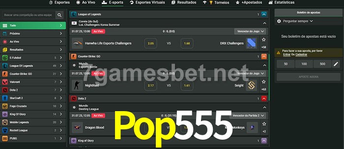 A aposta Pop555 oferece aos jogadores a experiência mais conveniente de apostas em eSports!